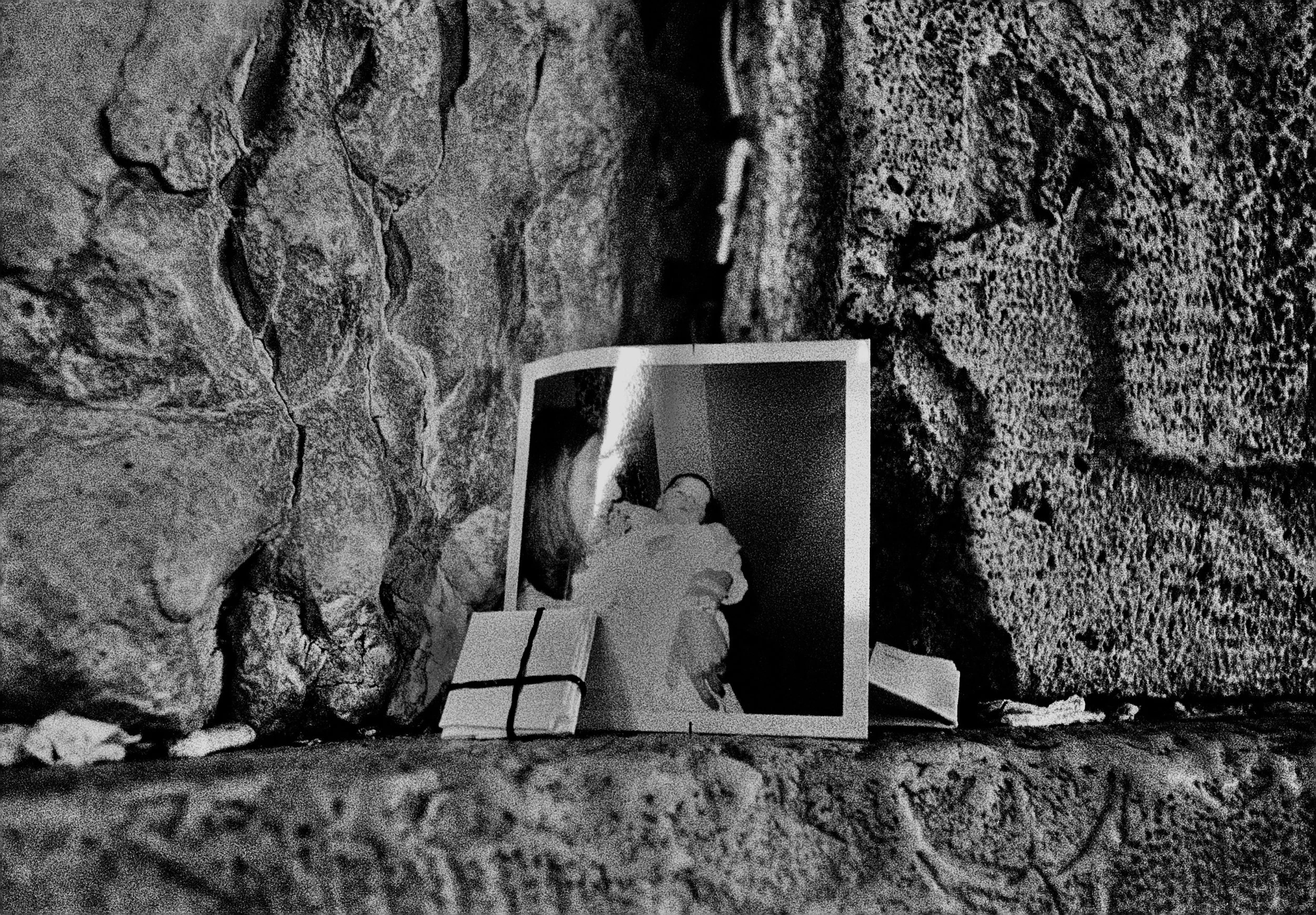 Prayers, handwritten notes, and photographs of loved ones are placed between the ancient giant stones of the Western Wall in Jerusalem.